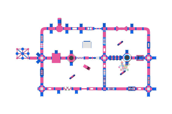 We use premium 0.9mm PVC tarpaulin, ensuring the product's durability, comfort, and minimal creasing during storage, making it easy to clean. Reinforced design. Additional reinforcement is applied to vulnerable areas like welding seams, internal baffles, and corners. Durable anchor rings. Made from 316 stainless steel, our anchor rings are rust-resistant and suitable for long-term water use. Sturdy components. All handles and anchor rings are welded rather than glued, offering enhanced safety and preventing detachment. Stable connection system. This ensures greater stability for the entire park structure.